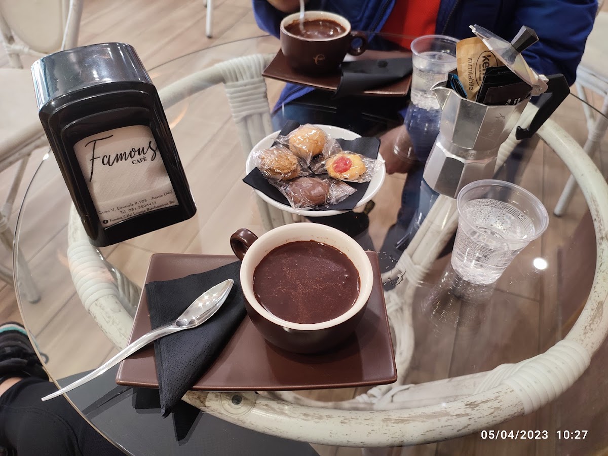 The heart of Famous Cafe' lies in its rich selection of offerings. According to Maria Cioffi, patrons can expect an “aperitivo molto ricco” (very rich aperitif) featuring products from Venchi and other renowned brands, perfect for indulging your taste buds. The menu includes delicious pastries, with Pasquale Russo raving about the “ottimi cornetti” – especially the unique apple and cinnamon flavor that gives a delightful twist to a classic treat. For coffee lovers, enjoy a cup of cappuccino praised for its smoothness, although be advised that the espresso may be a bit strong for some.
